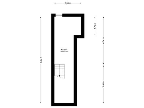 Kelder onder één/derde van het pand, onderverdeeld in verschillende bergruimtes