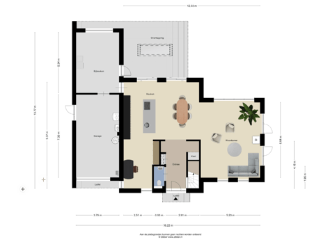 Vanuit de keuken is de bijkeuken op de begane grond/bijkeuken bereikbaar, hier bevindt zich de aansluiting voor de wasmachine & drogeropstelling. Deze ruimte kan tevens goed gebruikt worden als slaapkamer met badkamer op de begane grond. Vanuit de bijkeuken is tot de overkapping met lichtkoepel bereikbaar en is de aanpandige garage bereikbaar.
