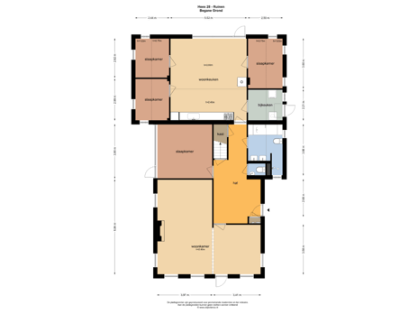 Begane grond: entree in royale hal, met de meterkast en trapopgang; L-vormige woonkamer aan de straatzijde van de woning, met ruimte voor een eet- en zithoek; royale slaapkamer; gastentoilet; badkamer met dubbele wastafel, ligbad, toilet en douchehoek; toegang tot de fijne woonkeuken. Deze ruimte is gelegen aan de achterzijde van de woning, waardoor aansluitend aan de eigen tuin. Door de rechte keukenopstelling en centrale gashaard is er voldoende ruimte voor een aangename zitplek. Aan weerzijden bevinden zich 3 kleinere (slaap)kamers, geschikt voor diverse doeleinden óf bij de ruimte te betrekken. De bijkeuken dient als achteringang en biedt ruimte aan o.a. de wasmachine.