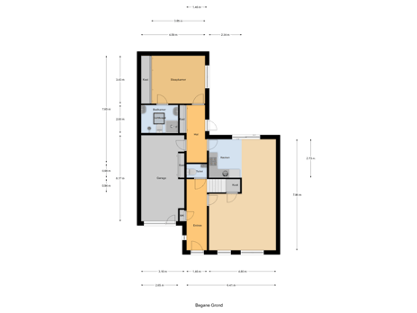 Vanuit de keuken bereikt u een extra hal. Deze hal geeft toegang tot de aangebouwde garage en een slaapkamer op de begane grond met badkamer ensuite. De garage is ruim en praktisch, ideaal voor opslag, fietsen of hobbygebruik. Hier bevinden zich tevens de cv-installatie en is voorzien van een garagedeur met een praktische loopdeur.