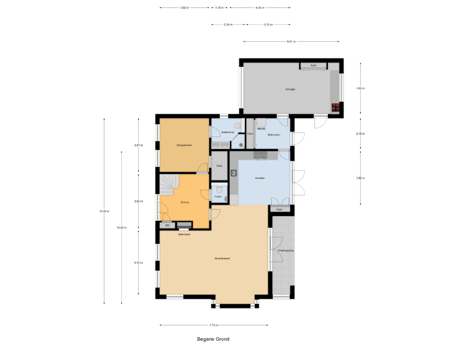 Aansluitend aan de keuken vindt u de praktische bijkeuken met witgoedaansluitingen en extra opbergruimte. Vanuit hier bereikt u de ruime inpandige garage, ideaal voor een auto, fietsen of als hobbyruimte.