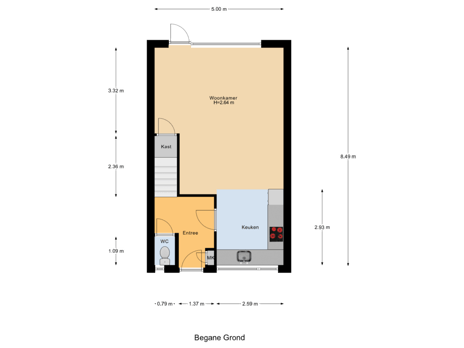 Via de verzorgde voortuin bereikt u de entree van de woning. De hal is praktisch ingedeeld met ruimte voor een garderobe, het toilet, de trapopgang naar de eerste verdieping en toegang tot de keuken.