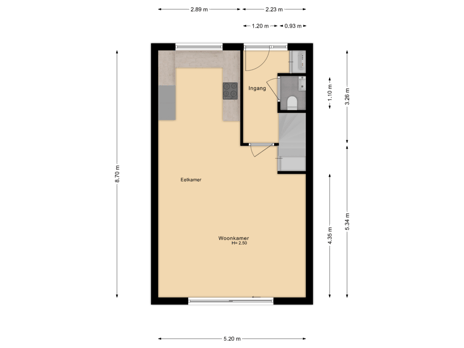 - 59 m² (10.90 metre deep and 5.40 metre wide)