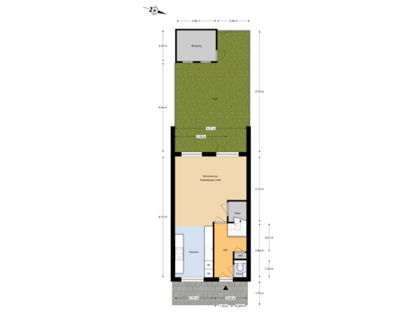- 45 m² (8.75 metre deep and 5.18 metre wide)