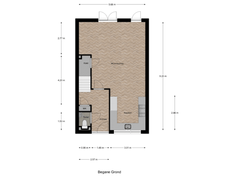 - 56 m² (4.50 metre deep and 12.50 metre wide)