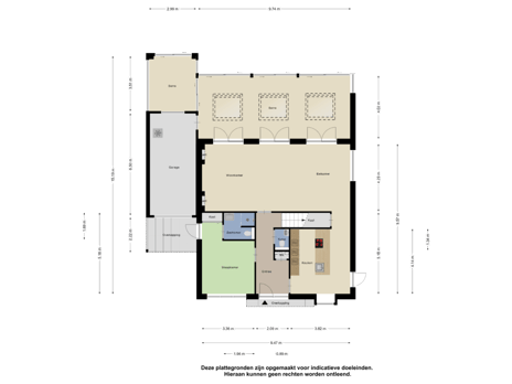 De serre is geheel af te sluiten met de glazen schuifpuien en door de lichtkoepels komt er veel licht naar binnen.