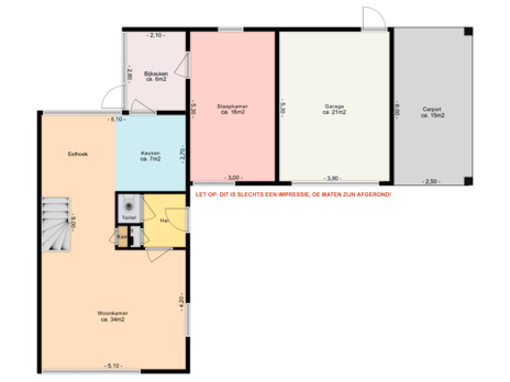 Via de voordeur aan de zijkant van de woning kom je binnen in de hal met toilet (met fonteintje), meterkast en deur naar de kamer met open keuken. Deze L-vormige living (34m²) is voorzien van een nette laminaatvloer en behang op de muren, heeft een kleiner raam aan de zijkant en grote ramen aan de voor- en achterkant. Met de pelletkachel aan wordt het snel warm en kunnen de CV-panelen wel dicht. De open keuken (7m²) is in 2021 voorzien van een nieuw keukenblok in een hoekopstelling met o.a. een inductiekookplaat, vaatwasser en met veel kastruimte. Ook is er een boiler waardoor je snel warm water hebt. Vanuit de keuken stap je zo in de bijkeuken met een deur naar de tuin en naar de slaapkamer. Deze slaapkamer is gemaakt in wat oorspronkelijk de garage was en is nu een sfeervolle ruimte geworden van maar liefst 16m². En met de ramen tegen over elkaar, kun je lekker en snel luchten.