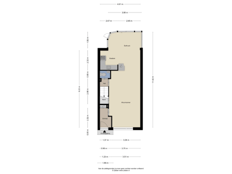 De woonkamer vormt het hart van de begane grond en voelt dankzij de open indeling direct ruim en uitnodigend aan. Grote ramen aan zowel de voor- als achterzijde zorgen voor een prettige lichtinval gedurende de hele dag en bieden uitzicht op de straat. Er is volop ruimte voor een comfortabele zithoek waar u kunt ontspannen.