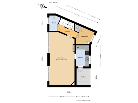 Binnenkomst op de overloop voorzien van een laminaatvloer die drempelloos doorloopt naar de woonkamer en de keuken. Vanaf de overloop is er toegang tot de het toilet, de woonkamer en een hobby-/werkkamer. Het toilet is volledig betegeld en voorzien van een staande toiletpot. Er is een te openen raam aanwezig, uitgevoerd in kunststof en het plafond is voorzien van inbouw spots. De woonkamer is gelegen aan de voorzijde en is voorzien van een laminaatvloer en kunststof kozijnen met dubbel glas. Het plafond is afgewerkt met kunststof schroten met inbouw spots. Vanuit de woonkamer is doormiddel van een toog toegang tot de keuken. De keuken is geplaatst in een L-vorm en de wanden zijn gedeeltelijk betegeld. Er zijn bovenkasten aanwezig en er is een dubbele spoelbak geplaatst in het aanrechtblad. Daarnaast is de keuken uitgerust met een koelkast, een 4-pits gaskookplaat en een afzuigkap. Er is een te openen raam, uitgevoerd in kunststof met dubbel glas en vanuit deze ruimte is er toegang tot het balkon. In de hobby-/werkkamer is een vast kast aanwezig voor extra bergruimte en hier bevindt zich de opstelling van de Cv-ketel. De vloer is voorzien van laminaat en het houten schuifraam biedt voldoende lichtinval.
