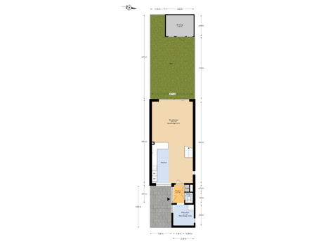 - 46 m² (9.70 metre deep and 4.70 metre wide)
