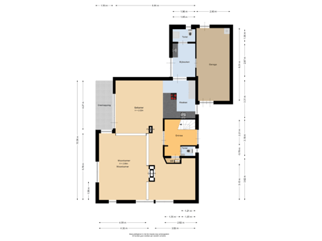 De garage is bereikbaar vanuit de oprit, de tuin en inpandig via de bijkeuken. De garage is afgewerkt met stucwerk wanden en plafond en een betonvloer en voorzien van elektra, verwarming en een lichtkoepel. De ruimte is ook geschikt om bijvoorbeeld een kantoor of salon aan huis te realiseren.