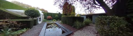 Aan de voorzijde is de tuin fraai aangelegd met vaste plantenborders. De rechterzijde is verhard zodat u hier 2 auto's op eigen terrein kunt parkeren. Aan de linkerzijde vindt u de achterom naar de achtertuin. Deze is ca. 17 meter diep en fraai aangelegd met meerdere terrassen, bomen, borders met volwassen beplanting, vijver en 2x een overkapping. De tuin beschikt over veel privacy. Een plek waar u heerlijk buiten kunt genieten.