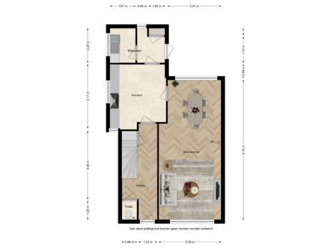 Je komt de hal van de woning binnen via de houten voordeur. Deze hal biedt plaats voor het toilet en de meterkast en biedt toegang tot de diepe kelder en de eerste verdieping. Vanuit de hal heb je tevens toegang tot de keuken en de woonkamer. Allereerst de woonkamer, deze heeft een royale oppervlakte van maar liefst 37 m² en is fraai afgewerkt met een houten parketvloer en inbouwspots. Je kan hier heerlijk verwarmen met de houtkachel en je hebt dus alle ruimte voor een gezellige zithoek en een lange eettafel. Aan de achterzijde is al een stuk uitgebouwd, hier krijg je veel licht binnen middels de schuifpui en lichtstraat. Ook langs hier is de keuken te betreden. Deze frisse woonkeuken is in 2010 vernieuwd en voorzien van diverse apparaten, zoals een boiler (2007), een vaatwasser, een keramische kookplaat, een afzuigkap, koelkast en een combi-oven. Je hebt nog genoeg plaats over om hier een tafel te zetten. Vervolgens betreden we de bijkeuken met de witgoedaansluitingen. Daarnaast is er nog de eerste badkamer te vinden. Deze is al wat gedateerd, maar biedt wel de mogelijkheid tot het gebruik van een extra badkamer.