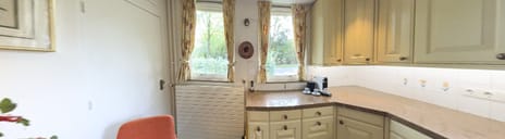 De semi-open keuken is voorzien van een hoekopstelling, extra aanrecht met kookplaat (gas en elektrisch), afzuigkap, stoomoven, magnetron en vaatwasser, de keuken is daarnaast voorzien van een natuurstenen aanrechtblad. Vanuit de keuken heeft u toegang tot de bijkeuken met aansluitingen voor wasmachines en uitstortgootsteen, en een deur naar de oprit.