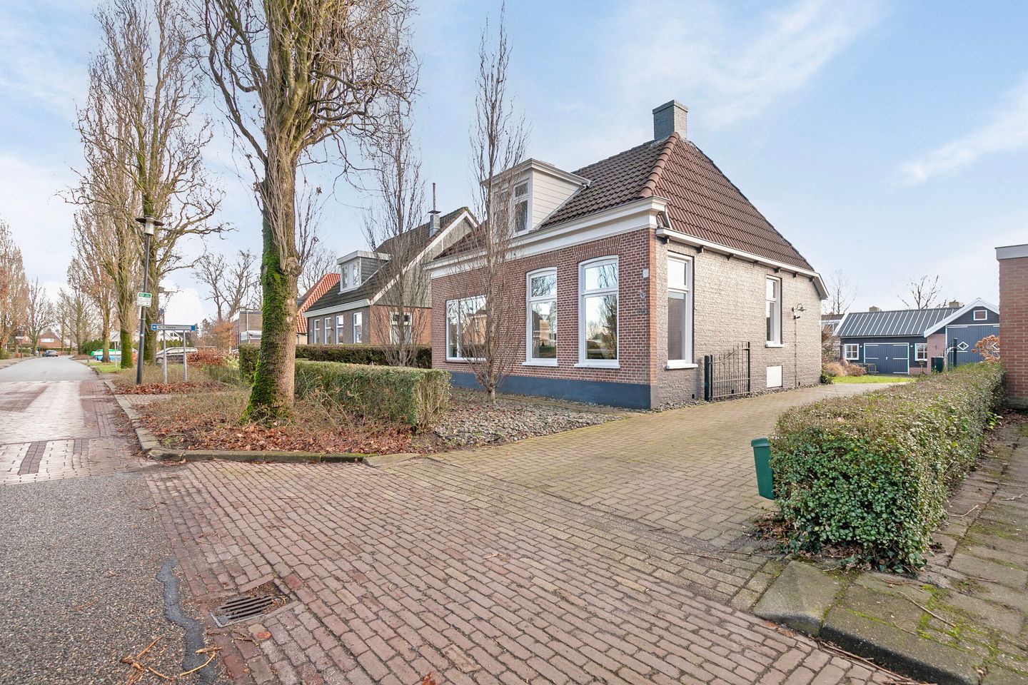 De woning heeft een lange oprit die doorloopt tot aan de schuur. De houten berging met veranda en vlonderpad biedt voldoende ruimte voor opslag of hobby's. Ook kun je hier heerlijk loungen. Daarnaast is er een kas voor tuinliefhebbers.