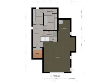 Volledig gestorte kelder welke geheel vochtvrij is, grotendeels voorzien is van centrale verwarming en met als volgt is ingedeeld: