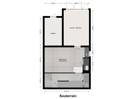 In het onderhuis (met nieuwe trap) is vanuit een ruime hal (met veel bergruimte en o.a. de aansluitingen voor het witgoed en de cv-opstelling) een extra kamer bereikbaar. Deze kamer is goed bruikbaar als slaap-/werkkamer of als hobbyruimte. Er is een klein keukenblokje aanwezig met een spoelbak, een venster in de zijgevel en een deur naar een toilet en de inpandige garage. Deze garage is nu in gebruik als berging/bijkeuken en is voorzien van een wateraansluiting, een dubbele én een enkele deur met toegang tot de tuin. Buitenom is de inpandige berging te bereiken en deze beslaat circa 10 m2. Handig als opslag- en/of klusruimte.