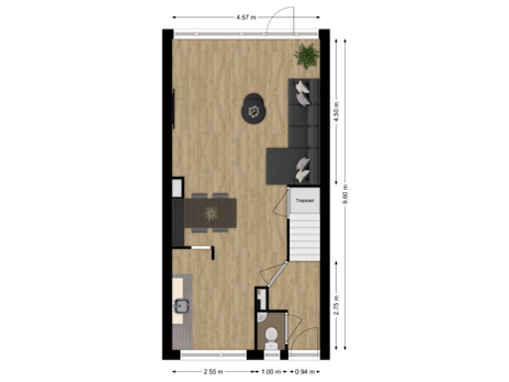 - 45 m² (9.00 metre deep and 5.00 metre wide)
