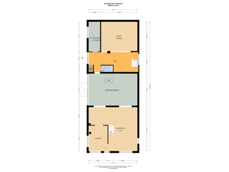 De woning is voor zover prima afgewerkt en heeft beneden een indeling met kleine voorkamer/kantoor, ruime L-vormige living. Aansluitend een woon-/eetkeuken van bijna 40 m² met een kelderruimte van ca. 5 x 3 meter. Op de 1e verdieping bevinden zich 3 slaapkamers. De ouderslaapkamer aan de achterzijde meet maar liefst 35 m² en geeft toegang tot het toekomstige dakterras op zonnige westen. Verder is er een badkamer met alle voorbereidingen.