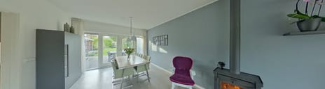 Vanuit de keuken loop je de fijne woonkamer binnen. De woonkamer is straatgericht en heeft een gezellige erker, wat zorgt voor veel natuurlijk licht. Aan de achterzijde van de woonkamer is ruimte voor opstelling van de eethoek, verder is er via de openslaande tuindeuren direct toegang tot de diepe achtertuin.