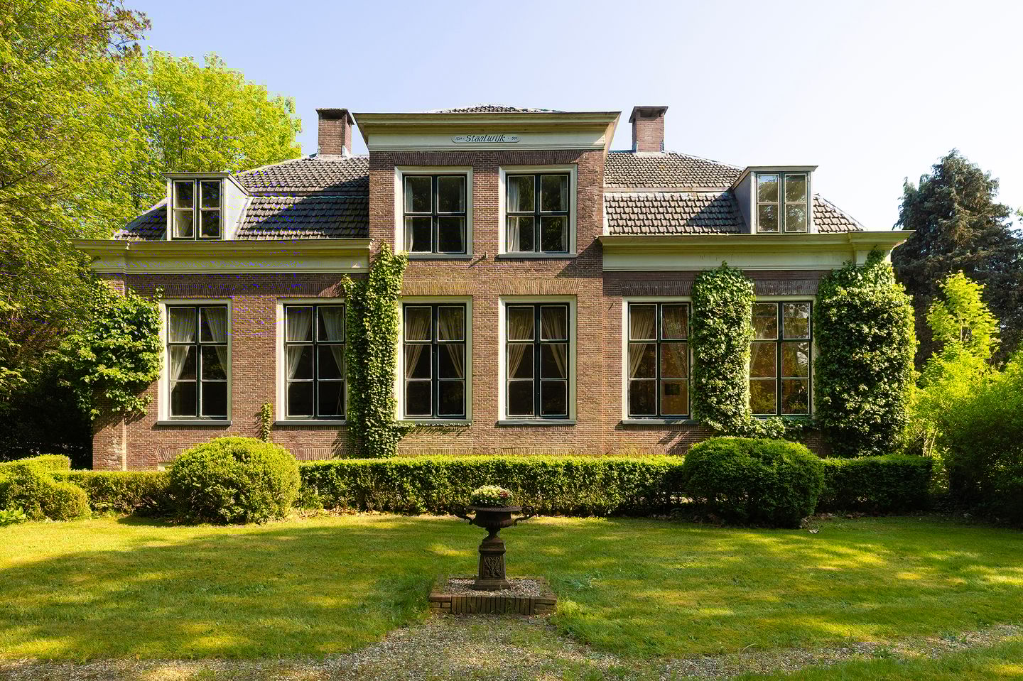 Via het elektrische toegangshek en een charmant bruggetje wordt u welkom geheten op het landgoed. De klassieke voorgevel contrasteert op prachtige wijze met het vrije uitzicht aan de achterzijde, richting de Utrechtse Heuvelrug.
