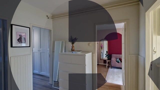 Through the central entrance, you reach the ground-floor apartment. Upon entering, the practical layout immediately stands out: almost all rooms are accessible from the hallway.