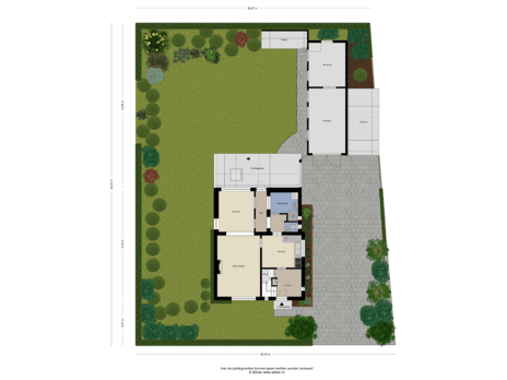 Aan de zijkant staat de grote vrijstaande stenen garage die verdeeld is in een garage en aparte werkruimte/berging met kap, voorzien van elektra en openslaande deuren naar de oprit. Direct ernaast bevindt zich de carport. De ruime oprit biedt plaats aan meerdere auto’s.