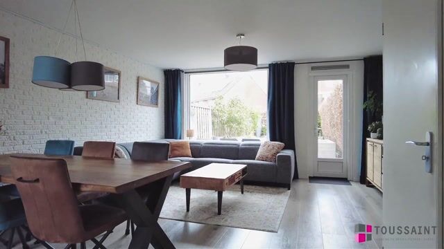 De woonkamer is ruim opgezet en voorzien van een laminaatvloer, vloerverwarming, gestucte wanden en een sfeervolle steenstrip wand. Dankzij de grote raampartijen aan de achterzijde komt er veel daglicht binnen. Vanuit de woonkamer heeft u toegang tot de achtertuin.