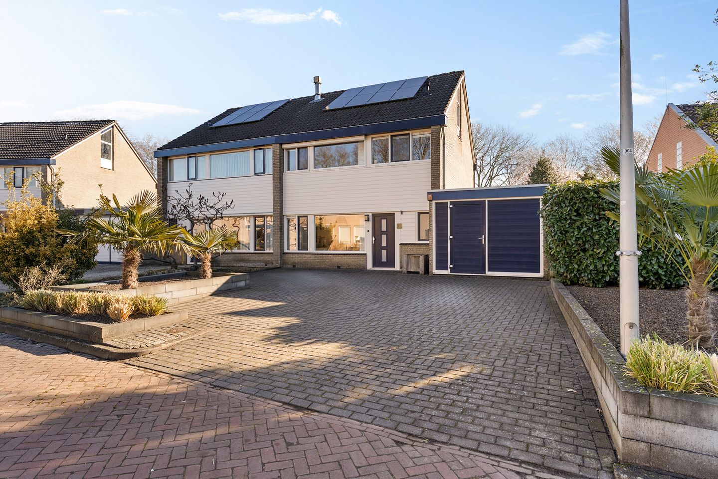 Deze comfortabele eengezinswoning is door de jaren heen gemoderniseerd en staat op een royaal perceel van 438 m² eigen grond. De woning beschikt over een lichte woonkamer met visgraatvloer en open keuken, vier slaapkamers, 2 badkamers en een praktische berging. Zomers is het heerlijk genieten in de diepe en zonnig georiënteerde achtertuin en waant u zich in warme oorden dankzij de aanwezige palmbomen.