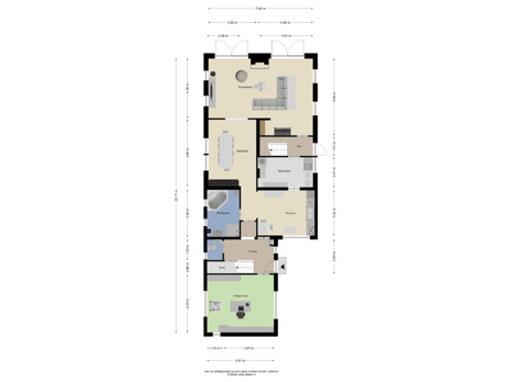 De royale en sfeervolle woonkamer bevindt zich aan de achterzijde met zicht op de tuin. Tevens bevindt zich op de begane grond ook een keuken en bijkeuken.