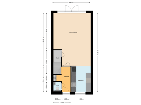 - 60 m² (11.85 metre deep and 5.08 metre wide)