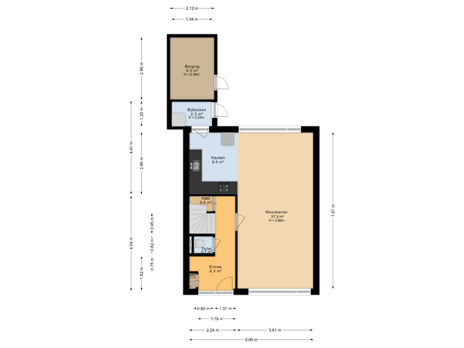 - 64 m² (10.70 metre deep and 6.00 metre wide)