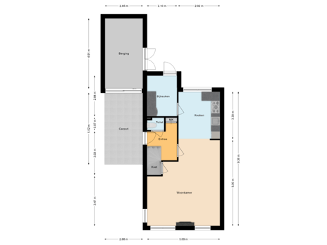 - Woonkamer met open keuken en praktische bijkeuken (die eventueel ook bij de keuken betrokken kan worden);