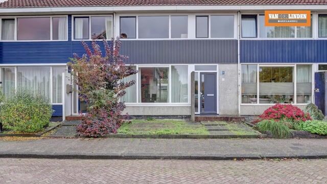 Begane grond: Entree/hal met trapkast, meterkast, toiletruimte met zwevend toilet met fonteintje in lichte kleurstelling, trapkast als provisieruimte, zeer ruime doorzon-woonkamer met laminaatvloer, zithoek aan de voorzijde met vrij uitzicht over groen, ruime eethoek aan de achterzijde met loopdeur naar de tuin. De keuken is voorzien van een ingebouwde gaskookplaat, vlakscherm afzuigkap, koelkast, vriezer, combimagnetron en vaatwasser, deur naar de achtertuin. De op het zuidoosten gelegen achtertuin is voorzien van een zonneterras, borders en zeer grote stenen berging met overkapping en achterom.