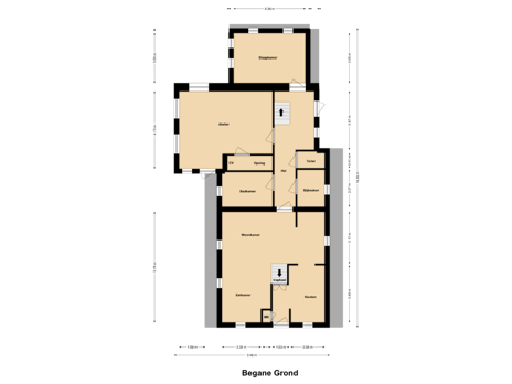 Zodra je de voordeur opent, merk je meteen de sfeer en de karakteristieke details van het huis. Je komt binnen in de keuken, uitgevoerd in een rechte opstelling en voorzien van een koel-vriescombinatie, vaatwasser, oven en 4-pits gasfornuis met afzuigkap. De landelijke tegelvloer sluit mooi aan bij de uitstraling van de ruimte. De keuken beschikt over een provisiekast (trapkast) en biedt toegang tot de meterkast en de woonkamer.