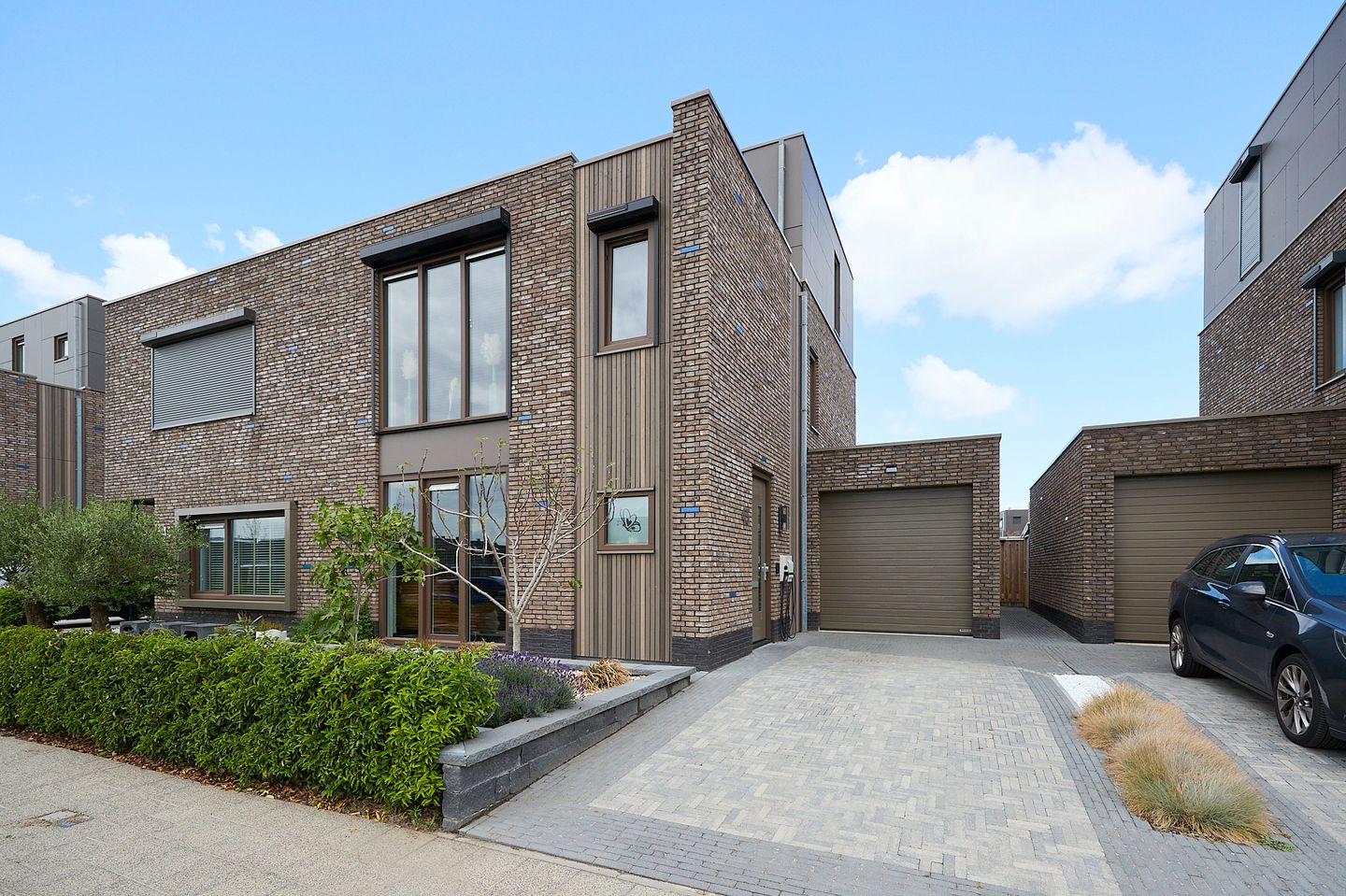 De woning is gasloos en volledig uitgerust met de nieuwste technologieën, waaronder zonnepanelen die bijdragen aan lage energiekosten en een warmtepomp die zorgt voor een duurzaam klimaat in huis. Het interieur is smaakvol en modern ingericht, met een strakke visgraatvloer die de woonkamer een warme uitstraling geeft. De woonkamer is slim ingedeeld met een gezellige zithoek en een open woonkeuken, waar je met gemak een maaltijd kunt bereiden terwijl je in contact blijft met het gezin of gasten. De ruime keuken biedt alle gemakken, met onder andere een inductiekookplaat, oven, vaatwasser, Quooker en een grote bar voor gezellig samenzijn.