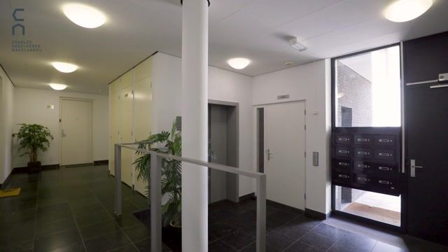 Via een stijlvolle entree met zowel trapopgang als hellingbaan bereikt u de centrale hal. Deze luxe ingerichte hal biedt toegang tot de lift, brievenbussen en een videofooninstallatie.