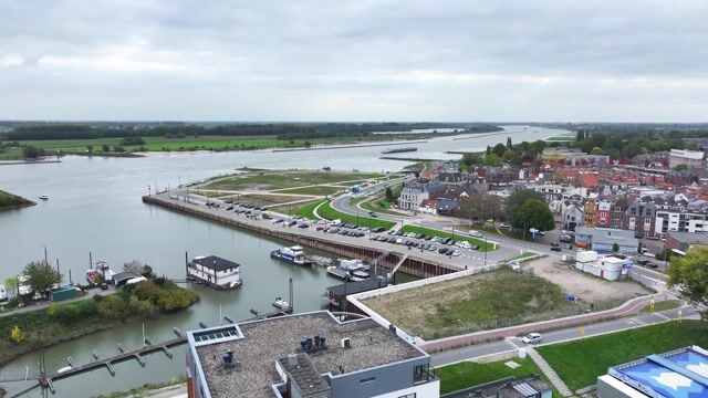 Op de bovenste woonlaag van dit stijlvolle complex ligt een penthouse dat je onmiddellijk pakt. Vanuit deze hoogte ontvouwt zich een panorama dat zeldzaam is: rivier de Waal glijdt kalm voorbij, boten trekken langzaam aan je voorbij en het pontje maakt zijn constante overtocht. Aan de voet van het complex strekt de stad Tiel zich uit, levendig, groen en verrassend mooi om van bovenaf te aanschouwen. En alsof dat nog niet genoeg is, zie je op afstand evenementen op de Waalkade tot leven komen, van Appelpop tot het fruitcorso, terwijl de lucht boven je elk moment van de dag een adembenemend spektakel biedt.