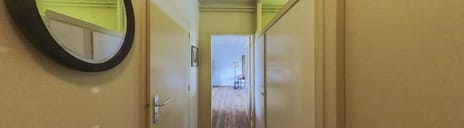 De hal/entree met laminaatvloer geeft toegang tot nagenoeg alle ruimtes van het appartement. In de hal bevinden zich ook de intercominstallatie, de meterkast en een handige bergkast.