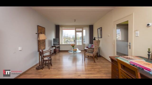 De woonkamer strekt zich uit over de volledige diepte van het appartement en is afgewerkt met een laminaatvloer. Door de grote raampartijen komt er veel prettig daglicht de ruimte binnen. Ook is de woonkamer voorzien van airconditioning. Vanuit de woonkamer heeft u toegang tot een balkon van ca. 4 m² gelegen op het oosten. De keuken heeft een keukenblok in hoekopstelling en is voorzien van een gaskookplaat, RVS afzuigkap en de CV-ketel. Vanuit de keuken heeft u toegang tot het tweede balkon (ca. 3 m²) gelegen op het zonnige westen. Door de ligging van het appartement op de derde verdieping bieden de balkons een mooi uitzicht over de wijk.