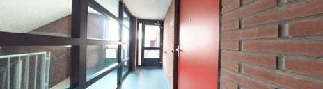 Afgesloten centrale entree met bellen- en brievenbustableau, de lift en trapopgang. De berging en parkeerplaats zijn tevens vanuit hier te bereiken.