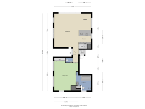 Daarnaast biedt de slaapkamer de mogelijkheid om eenvoudig te worden opgesplitst in twee separate slaapkamers, bijvoorbeeld door het plaatsen van een scheidingswand. Om dit inzichtelijk te maken is er een alternatieve plattegrond opgesteld, zodat u een goed beeld krijgt van deze praktische indelingsmogelijkheid.