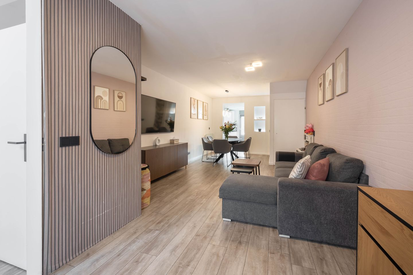 • Gezellige woonkamer met rolluik aan de voorzijde