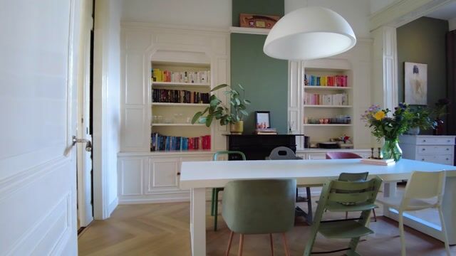 Wanden en plafonds zijn op de eerste verdieping strak gestuct en op de vloer ligt een keurig blokjesparket.