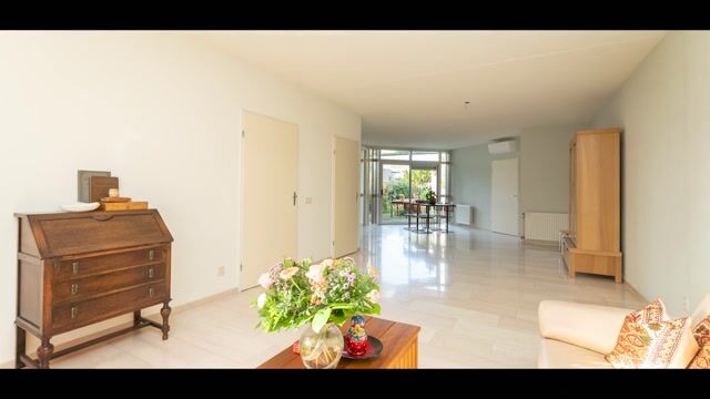 Wanneer u deze sfeervolle semi-bungalow binnenstapt, merkt u meteen hoe prettig het wonen is. De ruimte, het licht en de praktische indeling zorgen ervoor dat u zich direct thuis voelt. Alles is erop gericht om comfortabel te leven, met het gemak van gelijkvloers wonen en toch volop ruimte.Via de overdekte entree komt u binnen in de hal, die toegang geeft tot de royale woonkamer. Dankzij de grote ramen geniet u hier de hele dag van natuurlijk licht. Ook is er airconditioning aanwezig. De woonkamer loopt over in een ruime eethoek, waar u gezellig kunt tafelen met familie of vrienden. Aangrenzend vindt u de keuken. De keuken heeft een keukenblok in hoekopstelling en is voorzien van een keramisch kookplaat, RVS afzuigkap, vaatwasser, RVS spoelbak, koelkast en een combi-oven. Grenzend aan de keuken bevindt zich de bijkeuken, waar u extra opbergruimte en aansluiting voor wasapparatuur vindt. Vanuit hier heeft u directe toegang tot de inpandige garage, waardoor u altijd droog binnenkomt en praktische bergruimte binnen handbereik heeft. De volledige begane grond is afgewerkt met spuitwerk op de wanden en een tegelvloer.