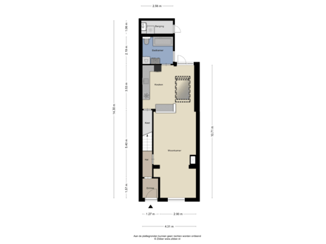 - 50 m² (11.00 metre deep and 4.50 metre wide)