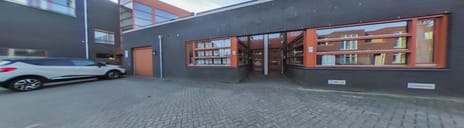 Wanneer je aankomt bij President Kennedylaan 163 merk je meteen dat dit geen standaard appartement is. De gezamenlijke entree brengt je in een tochtportaal, waar alles netjes en verzorgd oogt. Vanuit hier kom je óf in een kantoorruimte óf via een aparte deur in de eigen entree van de woning.
