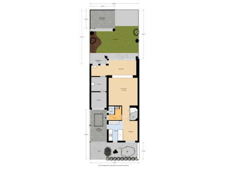 Op de vloer in de keuken ligt een tegelvloer in houtmotief, welke doorloopt in de woonkamer. Uiteraard is hier vloerverwarming aanwezig onder de vloer. In de woonkamer hangt ook een airco, zowel om te koelen als eventueel te verwarmen. Tussen de keuken en woonkamer is een vaste provisiekast gemaakt onder de trap en voor deze trap is een fraaie stalen taatsdeur geplaatst. Aan de achterzijde is de woonkamer met circa 3 meter uitgebouwd. In dit gedeelte ligt een prachtige houten 'kasteel'-vloer en zijn openslaande deuren naar de tuin.