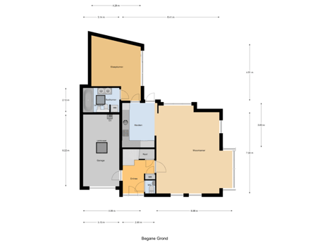 Op uw eigen oprit voor de garage is plaats om uw auto te parkeren. Via de voordeur stapt u de mooie entree binnen met hoge ramen en een mooie vide. Hier vindt u ook een gastentoilet met fonteintje. Vanuit de hal kunt u doorlopen naar de garage maar er is uiteraard ook een deur naar de woonkamer.
