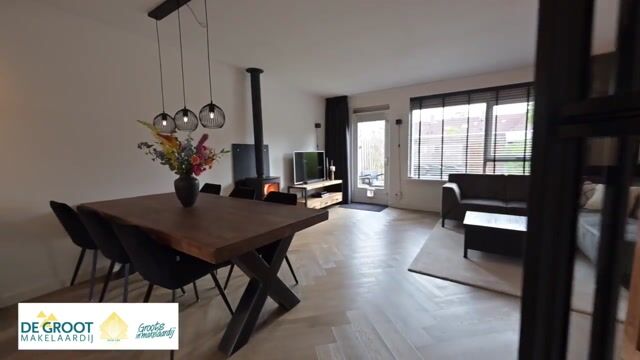 Bij binnenkomst valt direct de moderne afwerking en warme sfeer op. De woonkamer is tuingericht en voorzien van een prachtige visgraatvloer met vloerverwarming en grote ramen die zorgen voor veel lichtinval. Voor extra sfeer en warmte is er een knusse houtkachel aanwezig. De moderne keuken (2021) is volledig uitgerust met een inductiekookplaat, koel-/vriescombinatie, vaatwasser, afzuigkap en handige opberglades. De stalen deur naar de hal geeft de ruimte een stoere, eigentijdse uitstraling. Daarnaast is er een praktische trapkast aanwezig en toegang tot de verzorgde achtertuin.